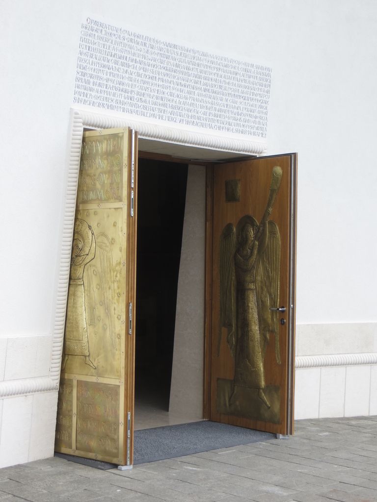 Una principală - PORTALUL, cu eleganta pisanie lucrată în frescă de-asupra. Și una, laterală ș secundară - destinată doar preoților și slujitorilor altarului. Orfevrăria acestora a fost lucrată de sculptorul creștin Virgil Scripcariu, alături de Bogdan Popa (orfevrier) și Andrei Răileanu (sculptor).