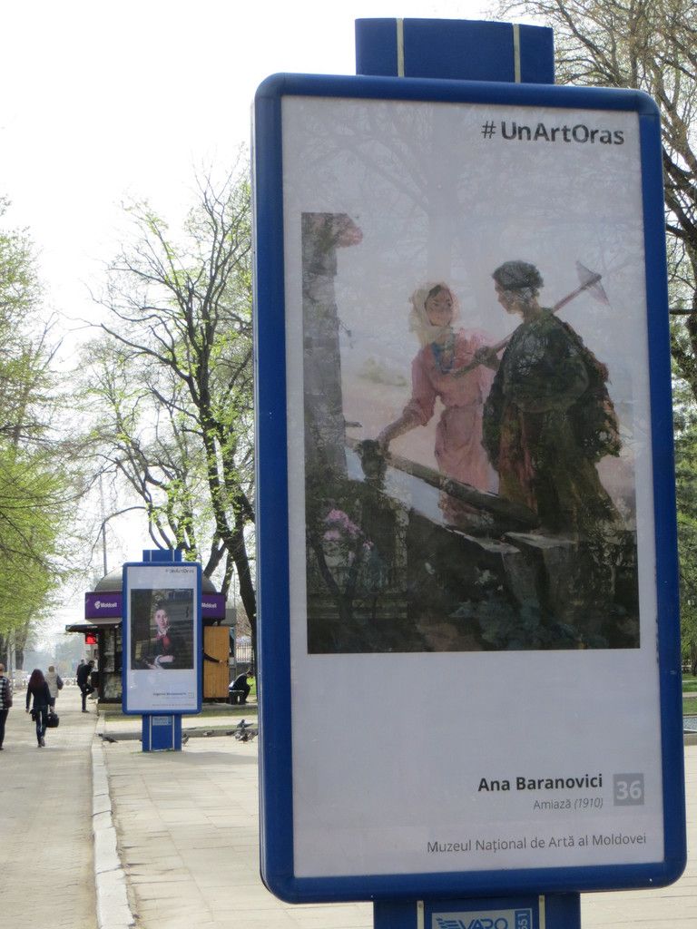 Ceva totuși mi-a atras atenția în chip deosebit, bucurie de moment pentru ochiul meu profesional. Este vorba de o serie de panouri care găzduiesc reproduceri după picturi din colecția Muzeului Național de Artă al Moldovei (mnam). Despre această instituție am scris de repetate ori, cel mai recent a fost consemnarea momentului în care milionul României a venit să salveze mnam dintr-un impas dubios, în care se afla de prea mulți ani.